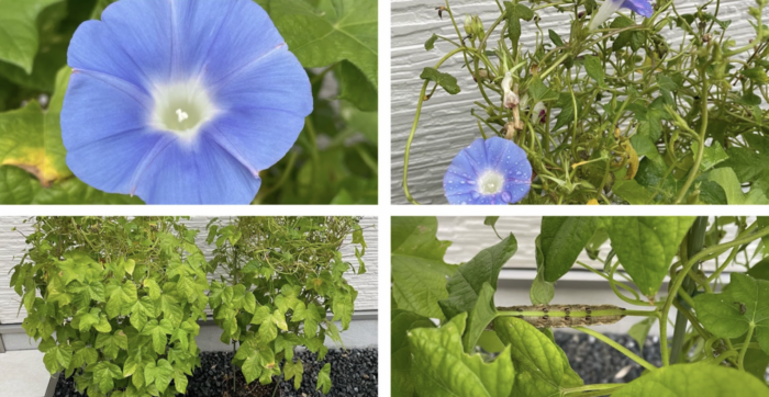 朝顔には多くの生き物が訪れました。オンブバッタのメスが住み、スズメガの幼虫は若葉を食べ荒らし、今はコナカイガラムシが群れています。虫が苦手な私ですが、必死に駆除法を調べるうち、ここがコンクリートに囲まれた住宅街の「小さなオアシス」と気づきました。望まぬ来客でも、世界はこうして回っている。私にできるのは水をやり、環境を整え、見守ることだと考えるようになりました。