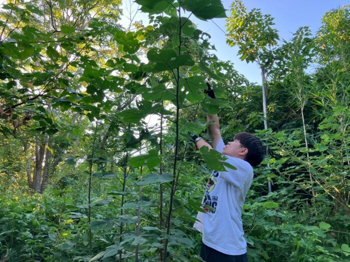 取手校地で和紙原料植物の楮を育てている様子