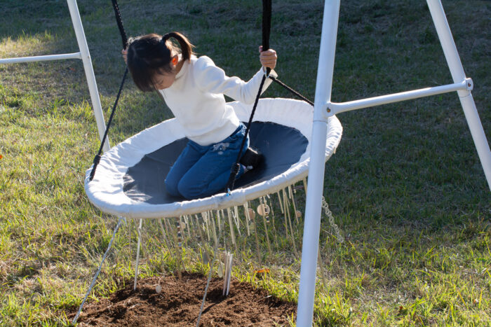 近作では参加型の作品を通して、鑑賞者の身体を介入させることで、日常的に目にしている物事の裏側に隠れた歴史やルーツを伝えることを目指しています。具体的には、ブランコや足つぼロードなどの公園によく見られる遊具の歴史や成り立ちを調査し、その背景を作品の中で展開させました。また、設備点検時にのみ機能していた大学の建物内の空間を身体の循環から外れた「凝り」に見立て、床の再構築と導線の設計によって人の自然な動きを誘導し、建物全体の循環へと再接続する試みも行いました。