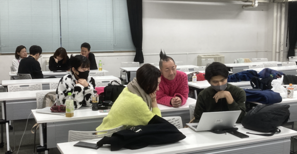 先生と受講生で編集画面を注意深く見ながら確認をしていきました。その上で、各チームごとに先生からアドバイスを伝えていただきました。