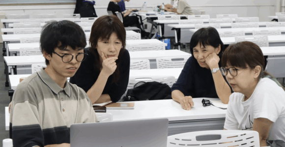 この日は、はじめに各チームの進捗を共有し、チームごとに交代で森内先生へ制作の相談を行いました。