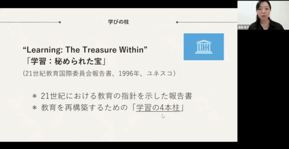 社会における共生・包摂をどのように達成していくのかという教育的実践を考える基本として、ユネスコ憲章前文やユネスコが示した「学習の4本柱」(学習:秘められた宝 /”Learning:The Treasure within” (1996年, 21世紀教育国際委員会))を確認していきます。